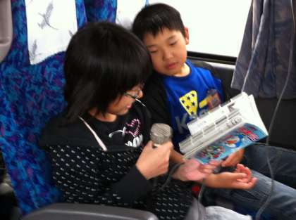 バスの中の様子の画像が届きました。バスレクが始まっています。