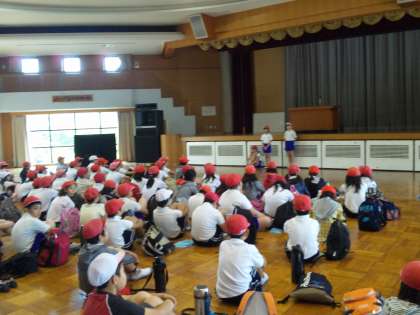 5年生児童の野外学習は、入所式が終わり、昼食の時間となりました。