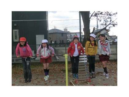 枯葉舞い散る中で、鉄棒にみんなでつかまっていました。