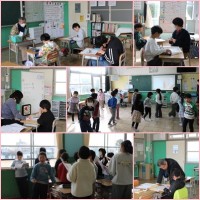 2年生の教室をのぞいて見ました。今日は一日、雨となってしまいました。外へは行けません。室内で絵を描いたり、本を読んだり、おしゃべりをしながら楽しく過ごしています。
