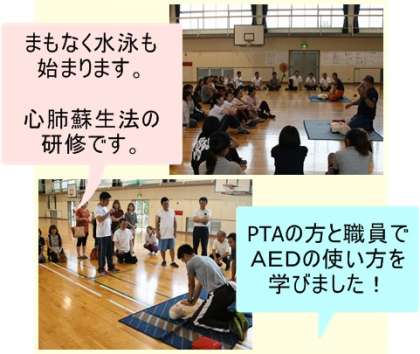 職員とPTAで心肺蘇生法の研修会を行いました。