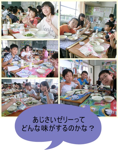 あじさいゼリーがでました!どんな味がするのでしょう?【6年2組】