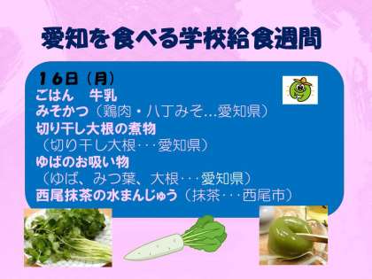 今日から愛知を食べる学校給食週間が始まります。【6/16(月)〜20日(金)】