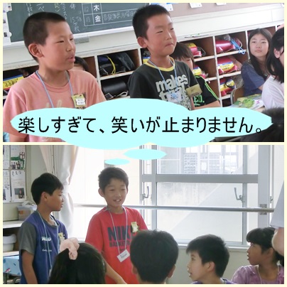 笑顔や笑いがいっぱいの授業。 本日は、中日こどもウィークリーの記者の方が取材にみえました。記事は9月号に掲載される予定です。さて、どんなふうになるのかお楽しみに!