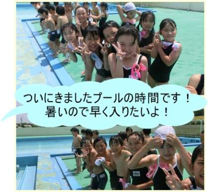 2年生がプールに一番最初に入りました。気持ちいい!【2年生】
