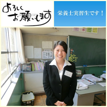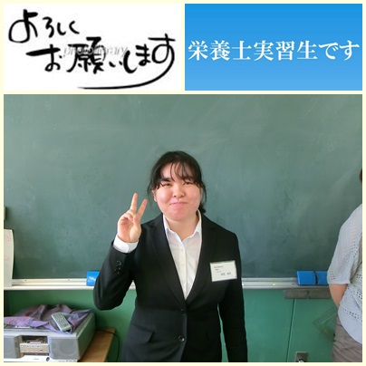 愛知江南短期大学2年の堀部美希です。藤里小学校の2年生も5年生も元気いっぱいで楽しく給食をいただくことができました。2日間ありがとうございました。