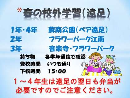 1年〜4年 春の校外学習(遠足)について  【お知らせ】