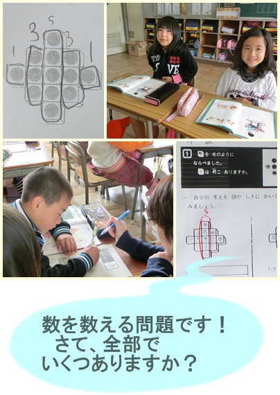 算数の時間です。実際に数えだした児童もいます。それも一つの方法です。