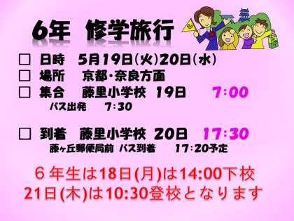 修学旅行の集合時刻と解散時刻、翌日登校時刻について 【6年生】