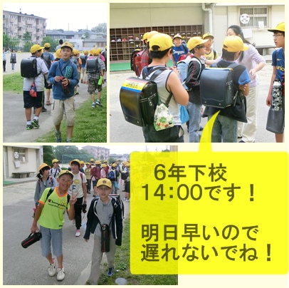 6年生は明日7:00集合です。前日の今日は14:00に下校しました。