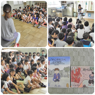 今日はお話玉手箱に,およそ90人の子が集まりました。今日は『ふつうに学校ににいく ふつうの日』『だいく と おにろく』の2冊を読んでいただきました。次回は6月2日です。