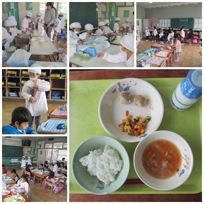 その後、給食を一緒に食べました。当番が変わったのにも関わらず、準備がスムーズにいき、配膳が上手で伊藤先生と僕は驚きました。今日もほとんど完食でした。