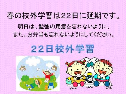 1年生・2年生・3年生・4年生のみなさんへの連絡です。