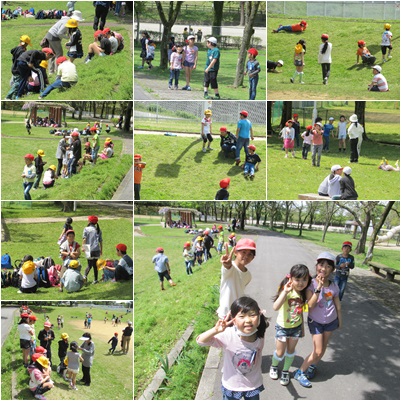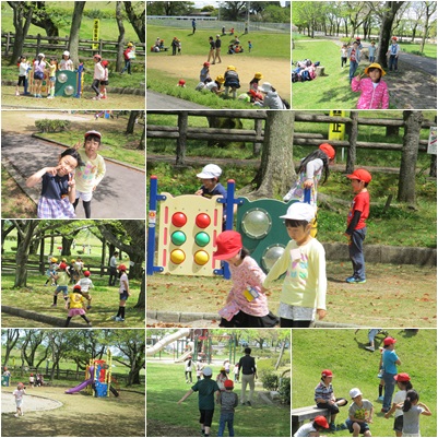 1年生と4年生が楽しそうに、自然観察やだるまさんがころんだなどを行っていました。