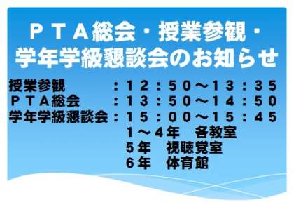 藤里小学校PTA総会・授業参観・学年学級懇談会のお知らせ
