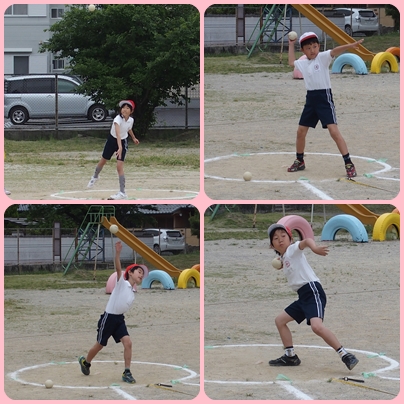 3年4年は,体力テスト『50m走』『立ち幅とび』『ソフトボール投げ』の3種目に取り組んでいます。