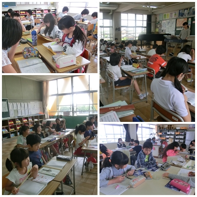 2年生は、ミニトマトの観察日記をつけていました。4年生は、教室で育てていたものを畑に植え替えました。 6年生音楽では、リズムの変化に気をつけて新しい歌を声に出して覚えています。 5年生は、月曜日からの野外学習に向け、班ごとに打ち合わせをしていました。