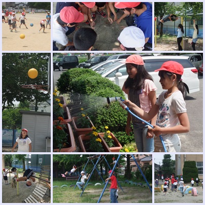今日も暑い日となりましたが、長放課には運動場で元気よく遊ぶ児童の姿が見られました。ドッジボール、(バスケットボールの)シュート練習、ブランコ、鉄棒、そして砂場で?
