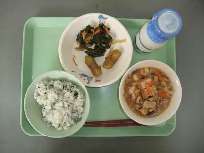 わかめごはん 牛乳 ちくわのしんちゃあげ