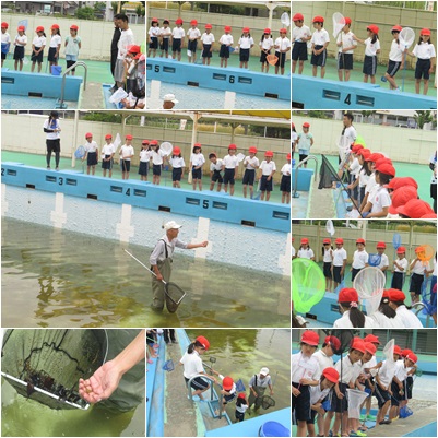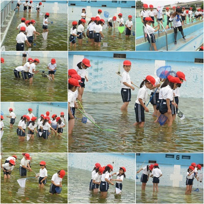2年生は1時間目、プールにおいて、ヤゴ救出大作戦を決行しました。水位が下がったプールで楽しそうにヤゴを救出していました。今年は例年と比べヤゴの数が10分の1ということで、とるのがたいへんだったようです。