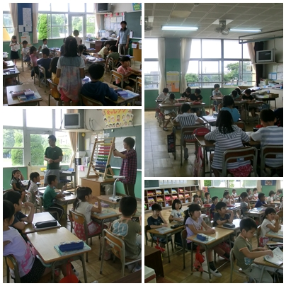 日差しが出てきて、教室も気温が上がる中でも、児童は学習に励んでいます。また、水泳の学習のため、2学年がプールに行っていて、校舎内は比較的静かです。