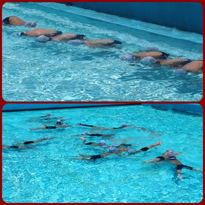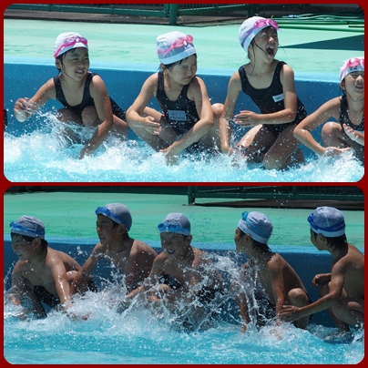 朝の曇天が一転,プール日和です。2年生は,『だるま浮き』『伏し浮き』がみんなできるようになっているかどうかを確認していました。