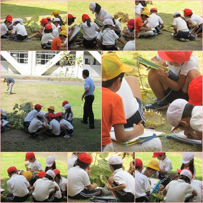 3年生の児童がひまわりをぬき、種などの観察をしていました。