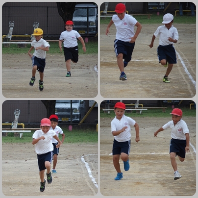 3年生『全力疾走!3年生』の練習です。トラック1周を全力で走っています。