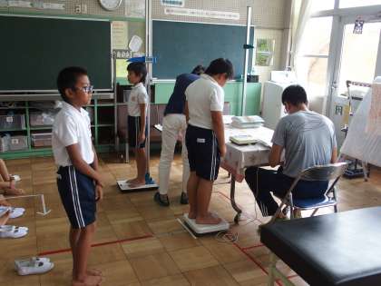 夏休みが終わり,2学期になったので全員が発育測定をしています。夏休みにひとまわり大きくなっていて見違えてしまいそうな子もいます。