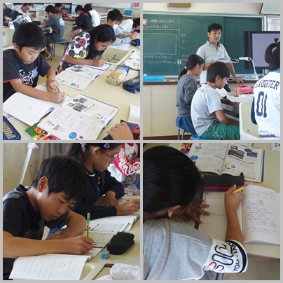 6年生 理科『6種類の水よう液を区別した結果を発表しよう』の授業の様子です。理科のノートに丁寧にまとめています。