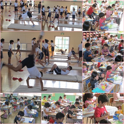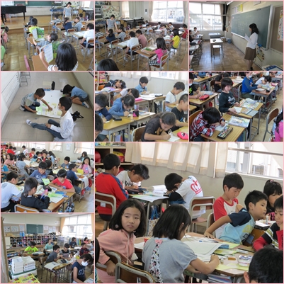 今日はたいへん蒸し暑い日となっています。そんな中でも、子どもたちはがんばって勉強に取り組んでいました。