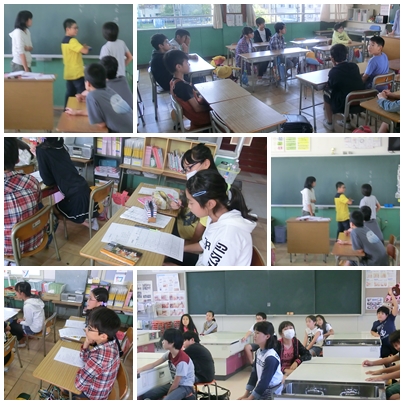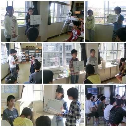 6年生理科では、行った実験の手順やその結果を説明していました。グループで作業を分担・協力し、どのグループも聴き手に分かりやすく伝えることができました。
