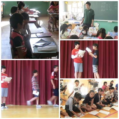6年生では、学習発表会の台詞読みをしていました。6年生は、児童同士がアドバイスをしあって、動きや伝え方を繰り返し練習をしています。