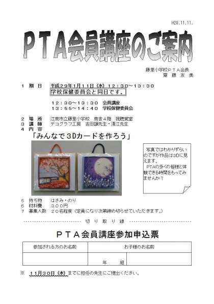 ※ 申込みは11月30日(水)までに参加申込票をご提出ください。