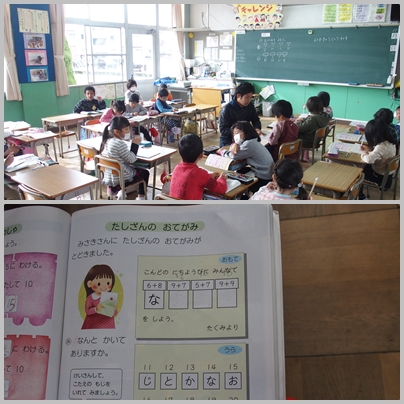1年生 算数「たしざんの おてがみ」の授業の様子です。なんだか難しそうです。