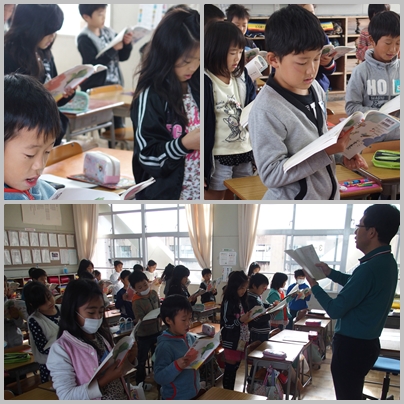 3年生 国語「短歌を声に出して読もう」の授業の様子です。