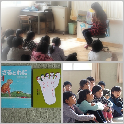 今日のおはなし玉手箱では『さるとわに』『だいすき,でも,ひみつ』の2冊を読んでいただきました。