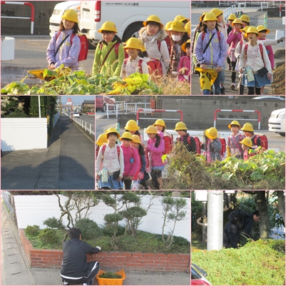 今日は、地域の方、先生方がそうじをしてくれていました。歩道など、たいへんきれいになりました。ありがとうございました。