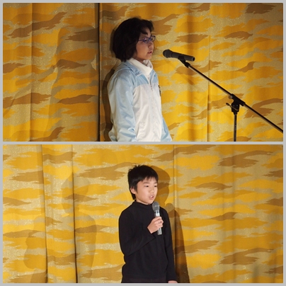 児童鑑賞日,「校長あいさつ」「児童代表あいさつ」の場面です。