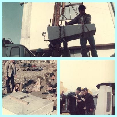 下段の写真は、今も学校のどこかにある「日時計」です。在校生のみなさん、どこにあるか分かりますか? 見つけたら、時刻を確認してみてください。