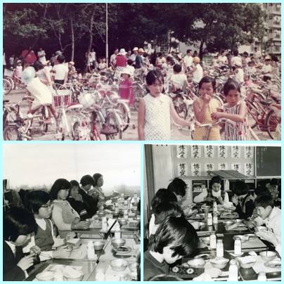 交通教室がさかんに行われている時代なので、自転車点検もしっかり行われています。写真は江南団地内ですが、自転車の数の多さにびっくりですね。