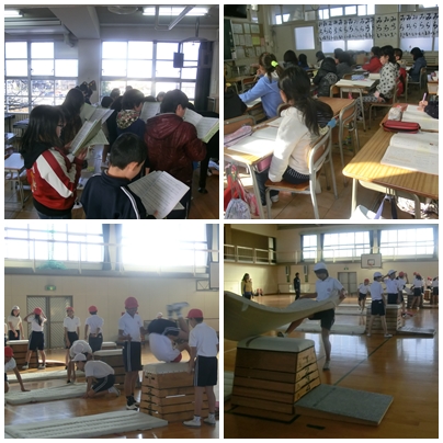 6年生体育では、学年全員が準備や補助などを分担して、安全に跳び箱運動を行っていました。友達が少しでもできるようになると、一緒に喜んでいる姿が印象的でした。ともに学習した6年間を物語っているようでした。