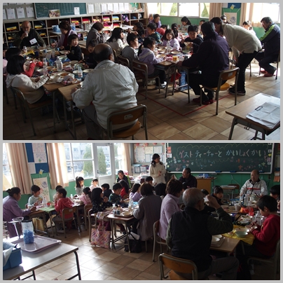 1年生は,今日,神明老人会の14人の講師の先生方に昔遊びを教えていただきました。会のあとには,一緒に給食も食べて楽しい時間を過ごすことができました。