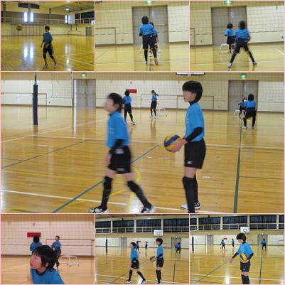 グランドはややぬかるんでいましたが、楽しそうにサッカーの練習を行っていました。体育館では、オーバーハンドパスの練習を繰り返し行っていました。