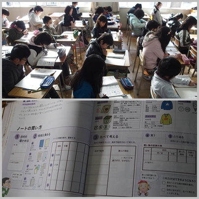 5年生 家庭科『ノートの買い方』の授業の様子です。