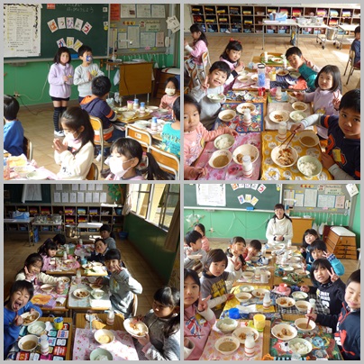 今日の給食は、石川県の郷土料理でした。子どもたちは、煮物をみたらしに似た味がする、汁がおいしいといった声をあげながらほとんど食べきっていました。給食で授業参観のパワーを充電したようなので、昼からさらに頑張ってほしいと思います。