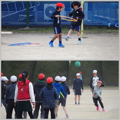 長放課の様子です。竹馬・フラフープ・一輪車・滑り台・ドッジボール・縄跳び…元気いっぱいです。