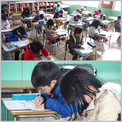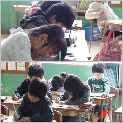 2年生 国語の授業(写真上2枚)・書写の授業(写真下枚)の様子です。