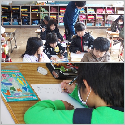 1年生 図工『ずこうさくひんしゅう づくり』の授業の様子です。