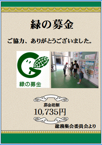 昨日、今日と2日間、緑の募金活動を行いました。総額10,735円が集まりました。ご協力、ありがとうございました。